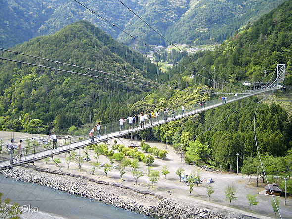 小学生の時、父が夏休みに連れて行ってくれた奈良県十津川村の【谷瀬のつり橋】。